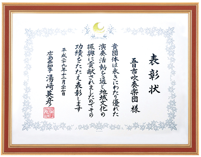 昨年末、2017年12月27日に『平成29年度 広島県地域文化功労者』を受賞いたしました。